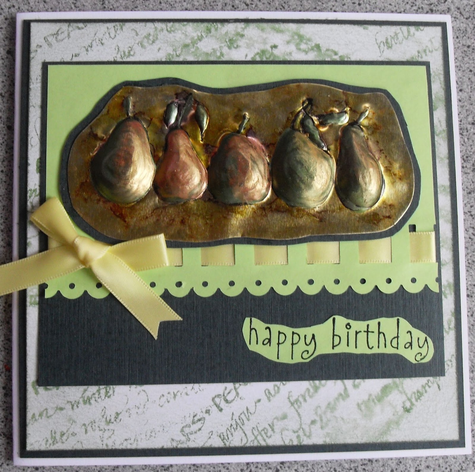 I Have had this metallic card for ages and it doesn't really go with anything and after seeing Barbara's idea of putting it through an embossing folder then rubbing with sand paper and then rub over the top with an ink pad here is my card for today.